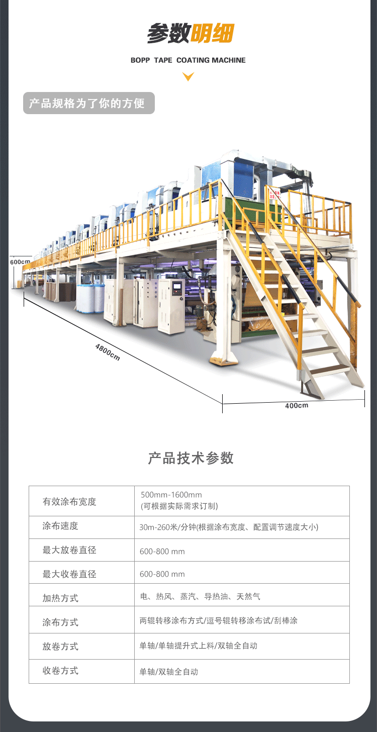 | 涂布速度 | BOPP膠帶40--260米/分鐘 |